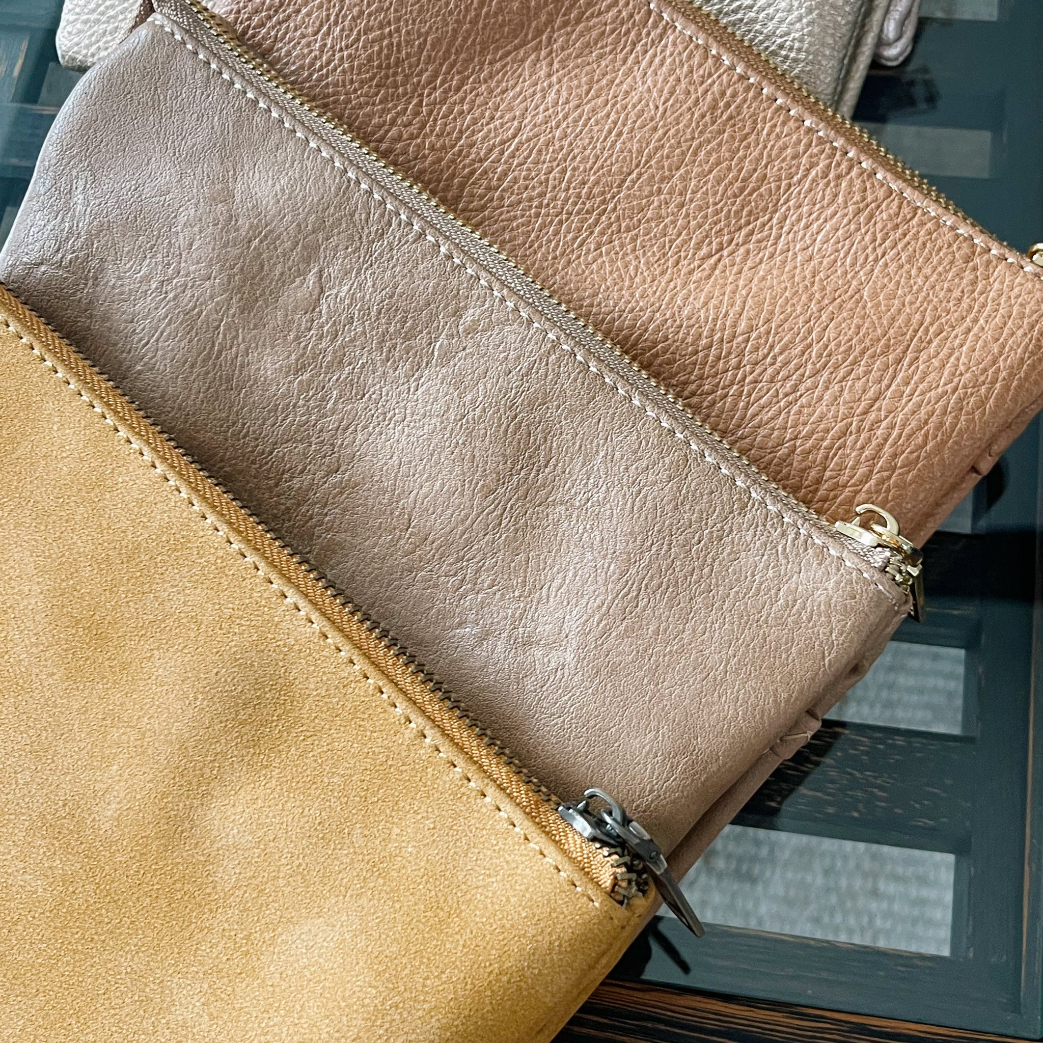 each crossbody bag comes with a matching wristlet strap and adjustable crossbody strap that are the same color as the chosen bag